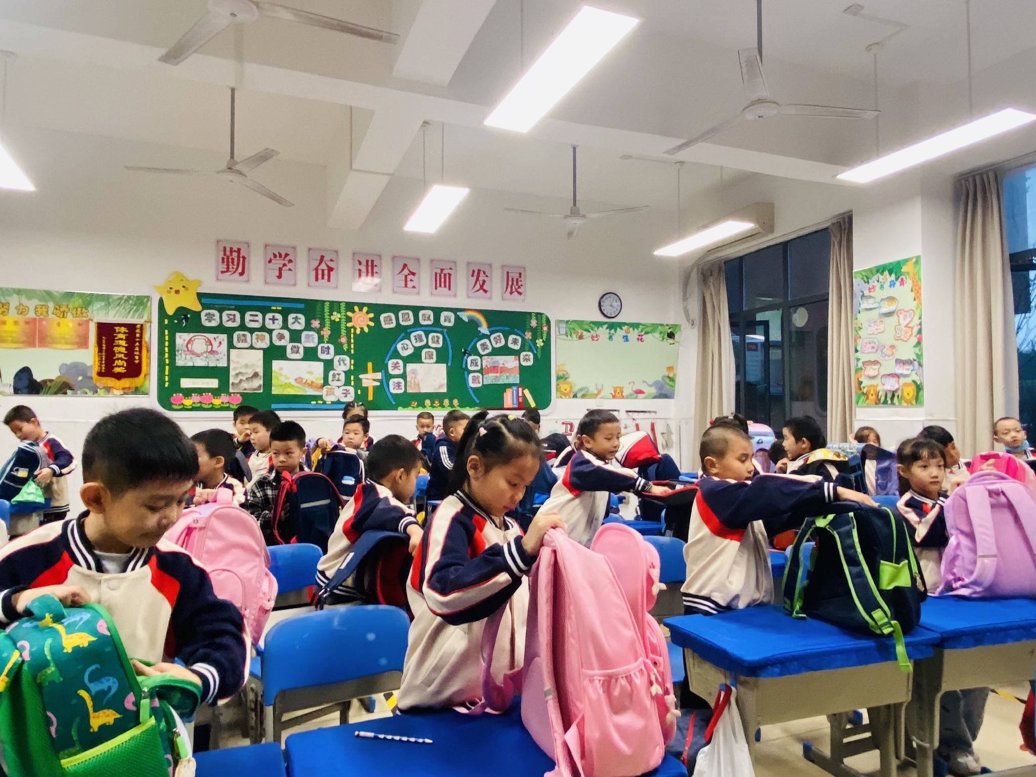 活动前,各班在班主任老师的带领下,一起回忆书包过重过大带来的生活不便及危害,学习相关知识,体会“为书包减负”的意义。为了让一年级的学生学会整理书包,养成自己整理物品的好习惯,老师们还详细讲解了整理的方法,并逐步做了示范。