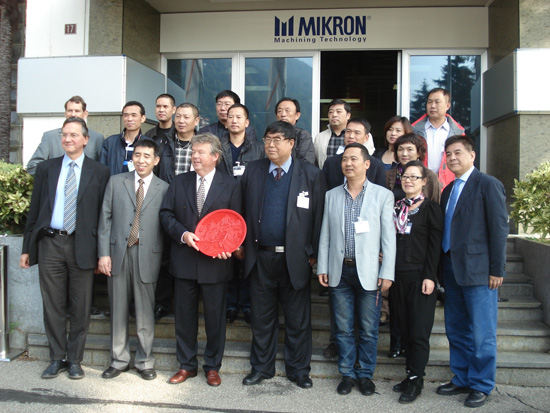 高峻诚理事长及代表团成员与瑞士米克朗公司高管合影