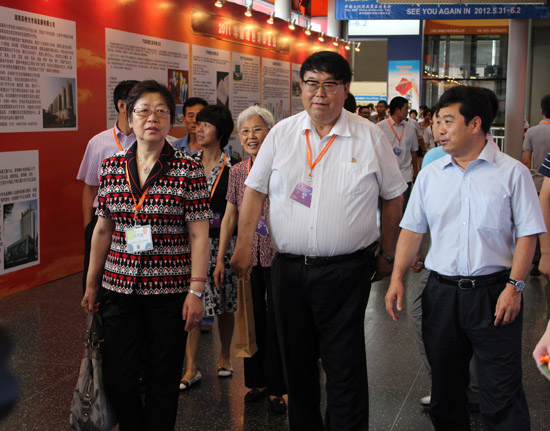 中国制笔协会理事长王淑琴、名誉理事长高峻诚、中国百货商业协会会长楚修齐步入展馆会场
