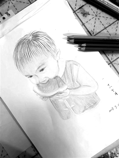 2017年,一次因工作备勤,汪艇有一个月没回老家,平时只能通过照片看看女儿。汪艇思女心切,看到父亲发来的女儿照片时,眼泪常常会掉下来。2017年3月,女儿满8个月了。汪艇决定用彩铅画来画女儿,以这种特别的方式传达自己对女儿的思念。“我喜欢画画嘛,用这种方式也可以记录女儿的成长。”汪艇说。