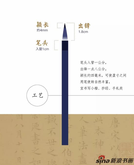 小小的毛笔正是带领我们穿梭时空诸法的利器。这批毛笔,工艺为独特的无披毛五层叠铺法,蓄墨下墨丰润,寿命倍于常规狼毫,可在万字以上。笔头入管一公分,出锋一点八公分,颖长约四毫米,可使盈寸之间用笔使转自然丰富,宜书写小楷、抄经、手札类。