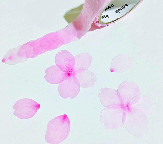 图说:由一张张贴纸拼接而成的樱花胶带,一卷胶带包含近两百片花瓣 图 GJ