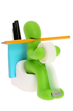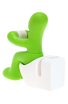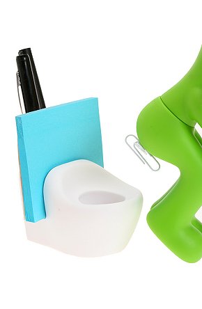 图解:这款名为The Butt Station的坐便器文具组合,包括胶带切割器,搁笔架,名片夹,还有在坐便器下带有磁性的回型针盒,多种功能让你轻松地整理和收納你的小文具。